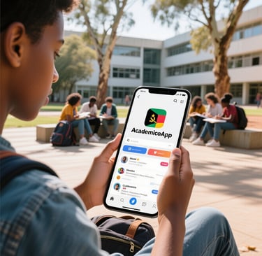 A Academicoapp é uma plataforma de suporte acadêmico e profissional com 10 anos de experiência em Luanda, oferecendo formação, mentoria e materiais acadêmicos.
